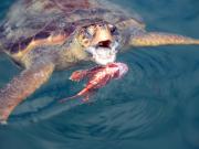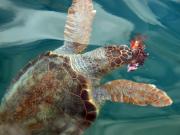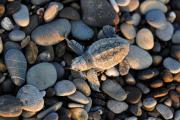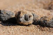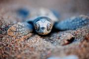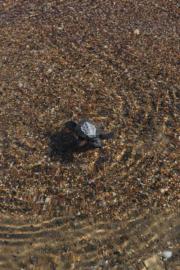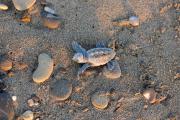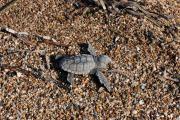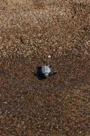 Yavru Caretta caretta'nın (Çiko) denizin ruhuna uzanan yolculuğu.Eylül 2009 Antalya Belek