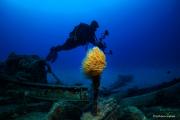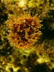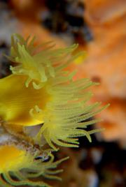 Latin Name: Sarı Sünger Anemonu.Parazoanthus axinella- Scorpaena sp