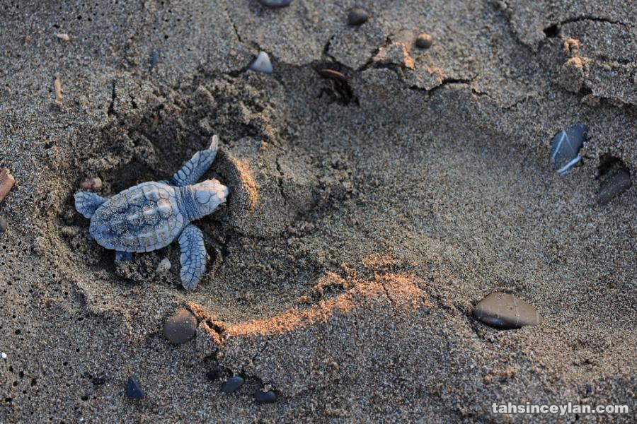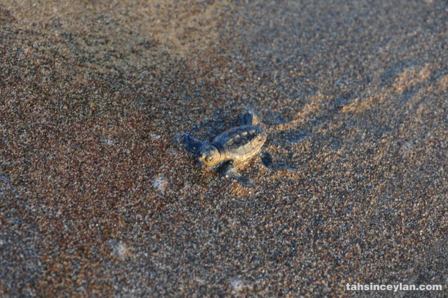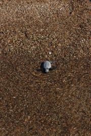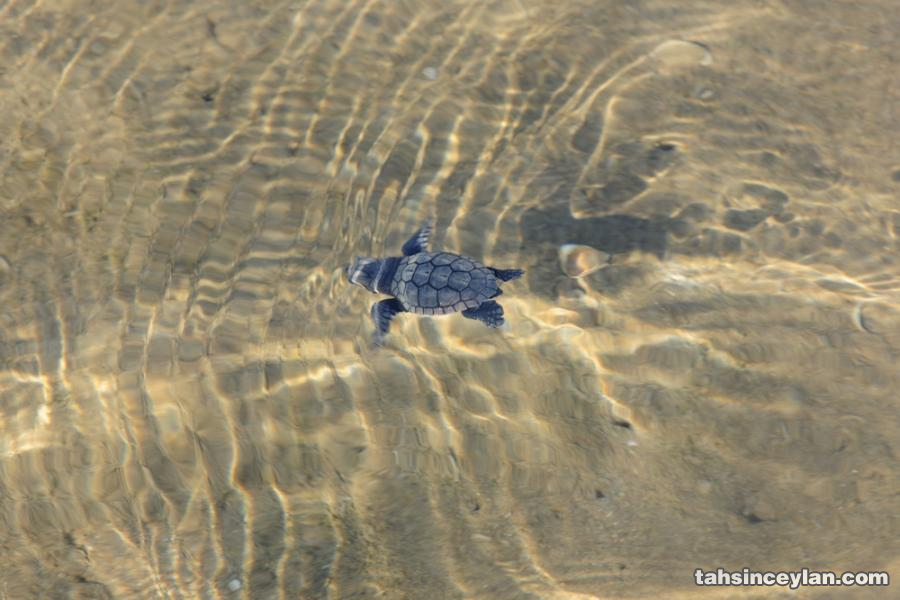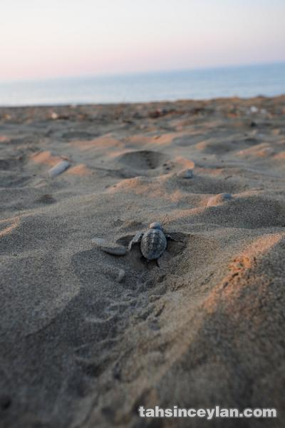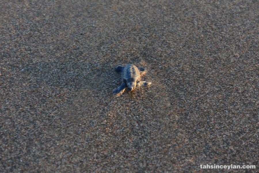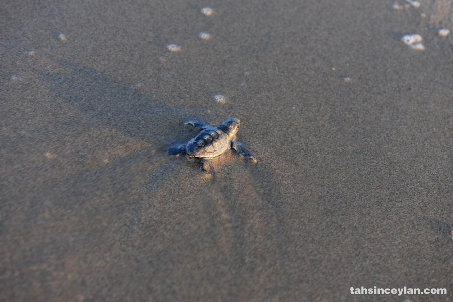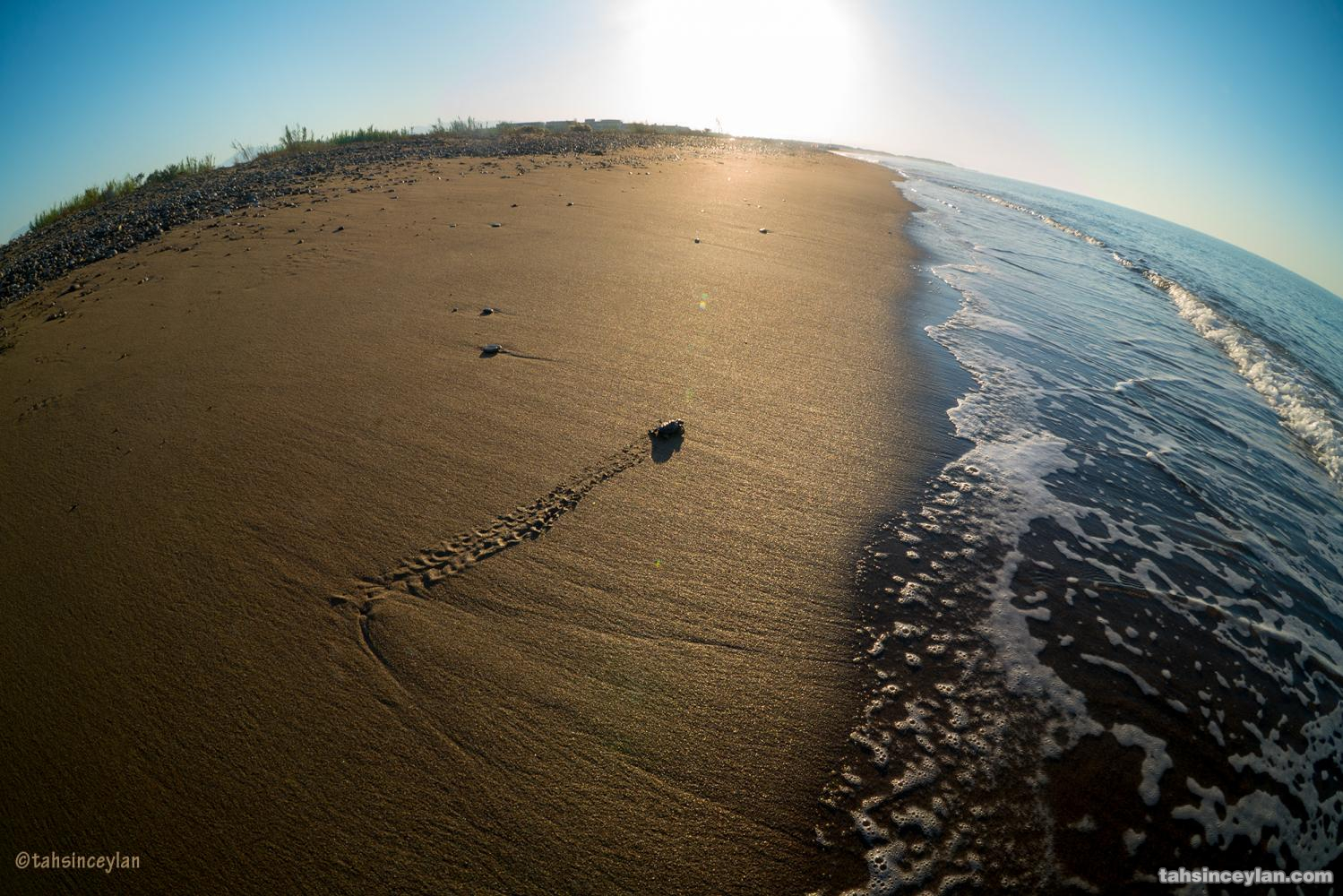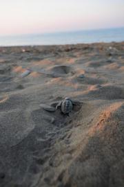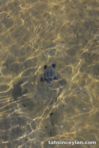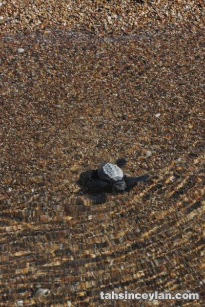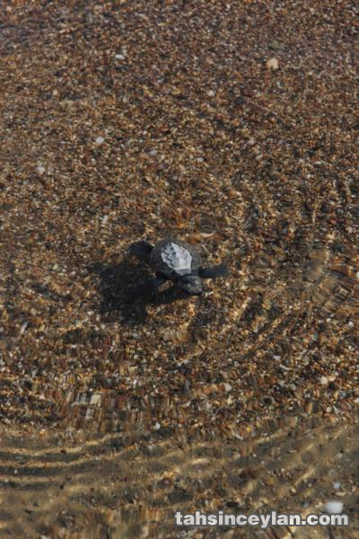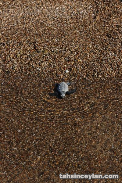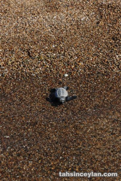 Yavru Caretta caretta'nın (Çiko) denizin ruhuna uzanan yolculuğu.Eylül 2009 Antalya Belek