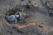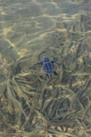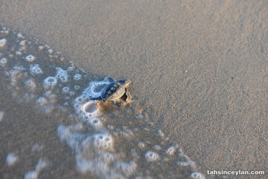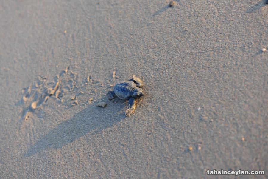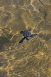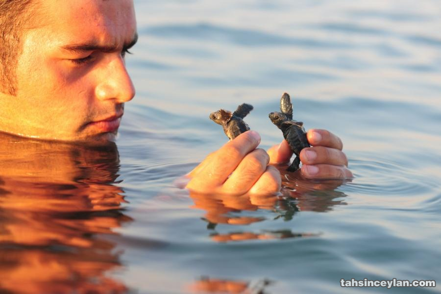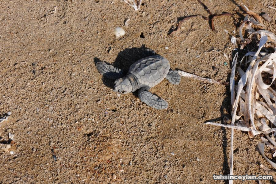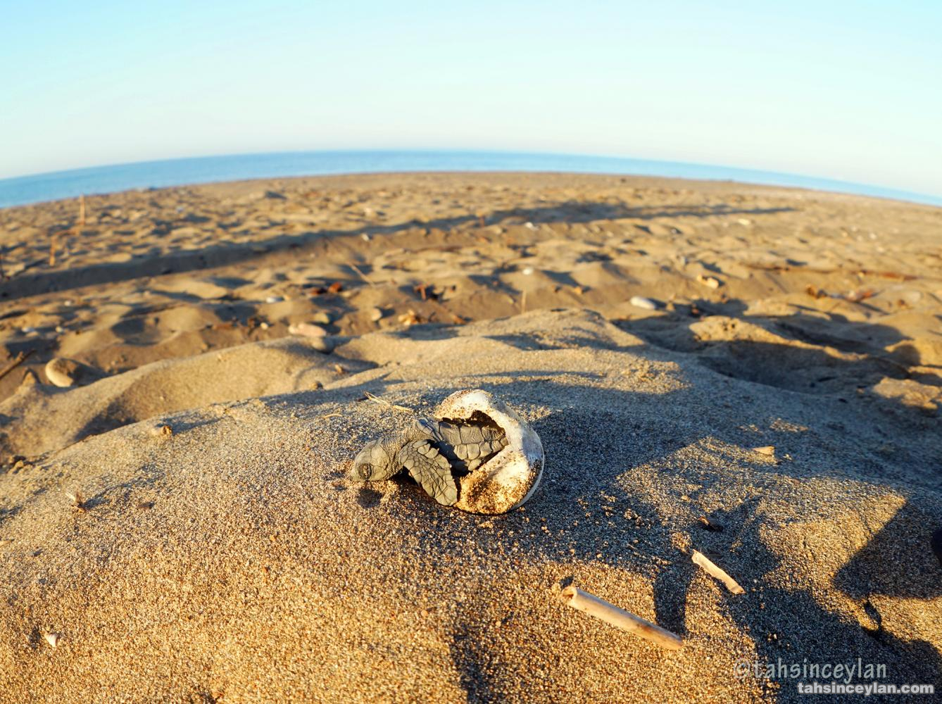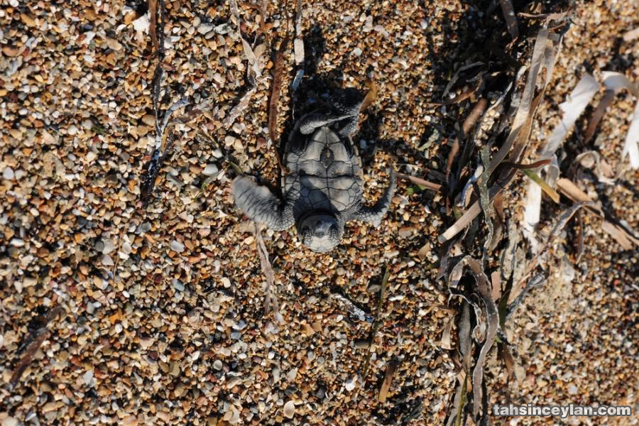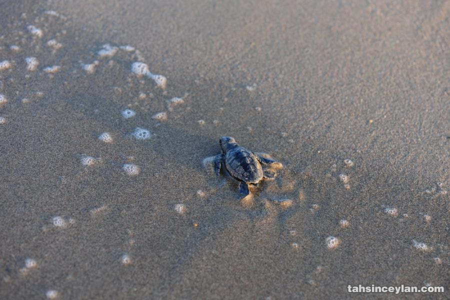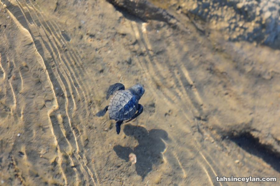 Yavru Caretta caretta'nın (Çiko) denizin ruhuna uzanan yolculuğu.Eylül 2009 Antalya Belek