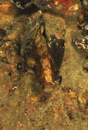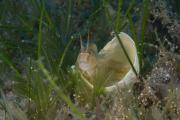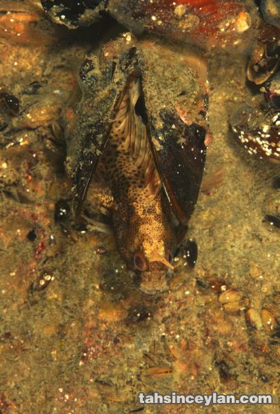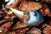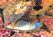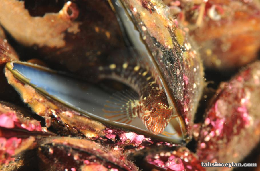 Midye kabuğunun üzerinde kendi yumurtaları görünüyor